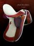 Třeba toto drezurní sedlo ve vícebarevném provedení: posedlí a velké bočnice jsou vyvedeny v béžovém semiši, lem zadní rozsochy v bílé, zadní část rozsochy v barvě pálené (tostado). Opěrka, vrchní strana polštářů, malé bočnice a lem bočnice jsou v barvě havana, zatímco přední lem bočnice a spodní strana polštářů v pálené (tostado). A třešničkou na dortu jsou prošití, paspulka a přední i zadní lemy v bílé barvě.